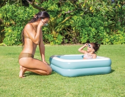 Pradžiuginkite vaikus nuosavu baseinu, kurį pastatysite per kelias minutes. Kvadratinė konstrukcija su aukštesniu kraštu yra stabili ir patogi, o pripučiamas dugnas sušvelnina smūgius ir padidina komfortą sėdint bei žaidžiant. Dėl kompaktiško dydžio baseinas idealus mažyliams ir priešmokyklinukams.