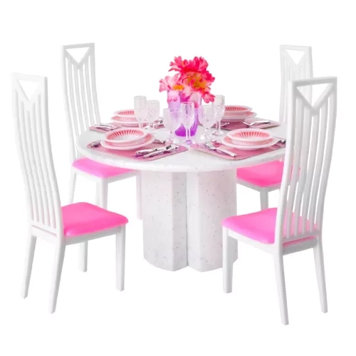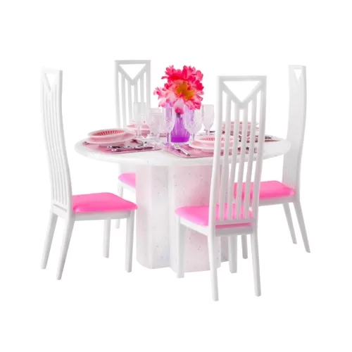 Šis apgalvotas baldų rinkinys pavers bet kurį lėlių namelį jaukiu valgomuoju. Dėl tikroviškų detalių – nuo rožinių padėkliukų, lėkščių ir stalo įrankių iki taurių – vaikai mėgausis ilgomis vaizduotės žaidimų ir vaišių su lėlėmis valandomis.