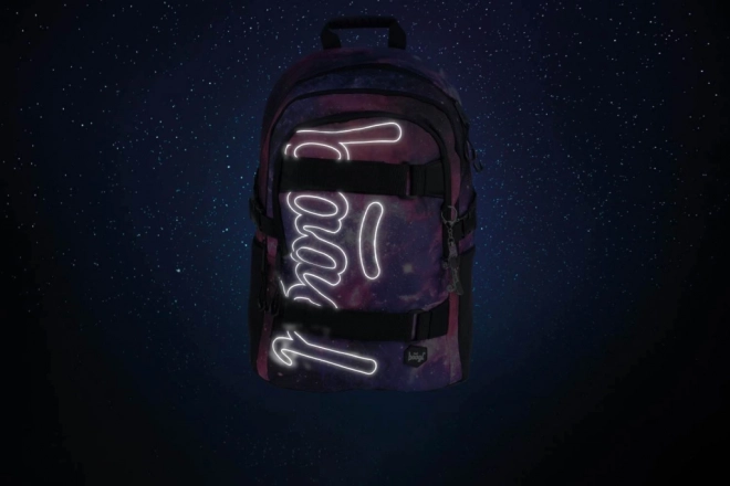Stilingas mokyklinis rinkinys BAAGL Skate Galaxy kosminio dizaino patiks kiekvienam moksleiviui. Jame yra lengva ergonominė 25 l kuprinė su kišene 15" nešiojamam kompiuteriui, tvirtas penalas be užpildo ir praktiškas maišelis sportbačiams. Kuprinė turi ergonomišką nugaros formą, reguliuojamas diržus, įskaitant krūtinės, diržus riedlentei, atšvaitinius elementus ir yra pagaminta iš vandeniui atsparios medžiagos. Visas rinkinys pasižymi lengva konstrukcija (850 g) ir apgalvota organizacija patogiam kasdieniam nešiojimui.
