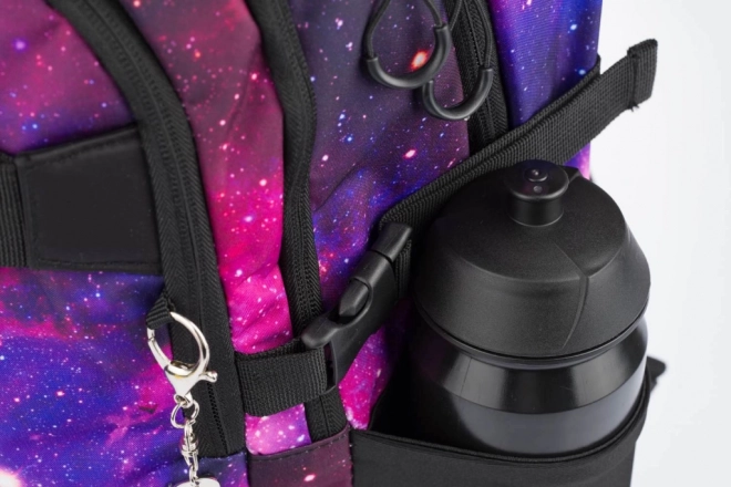Atraskite tobulą funkcionalumo ir stiliaus derinį. Mokyklinis rinkinys BAAGL Skate Galaxy siūlo patvarią kuprinę su trijų skyrių išdėstymu, organizatoriumi ir paminkštinta kišene 15" nešiojamam kompiuteriui ar planšetei. Ergonomiškai suformuota nugara, pilnai reguliuojami pečių, krūtinės ir šoniniai suspaudimo diržai užtikrina sveiką ir patogų nešiojimą visą dieną. Priekiniai diržai skirti riedlentei pritvirtinti, šoninės tamprios kišenės talpina gertuvę, o atšvaitiniai elementai didina matomumą.
