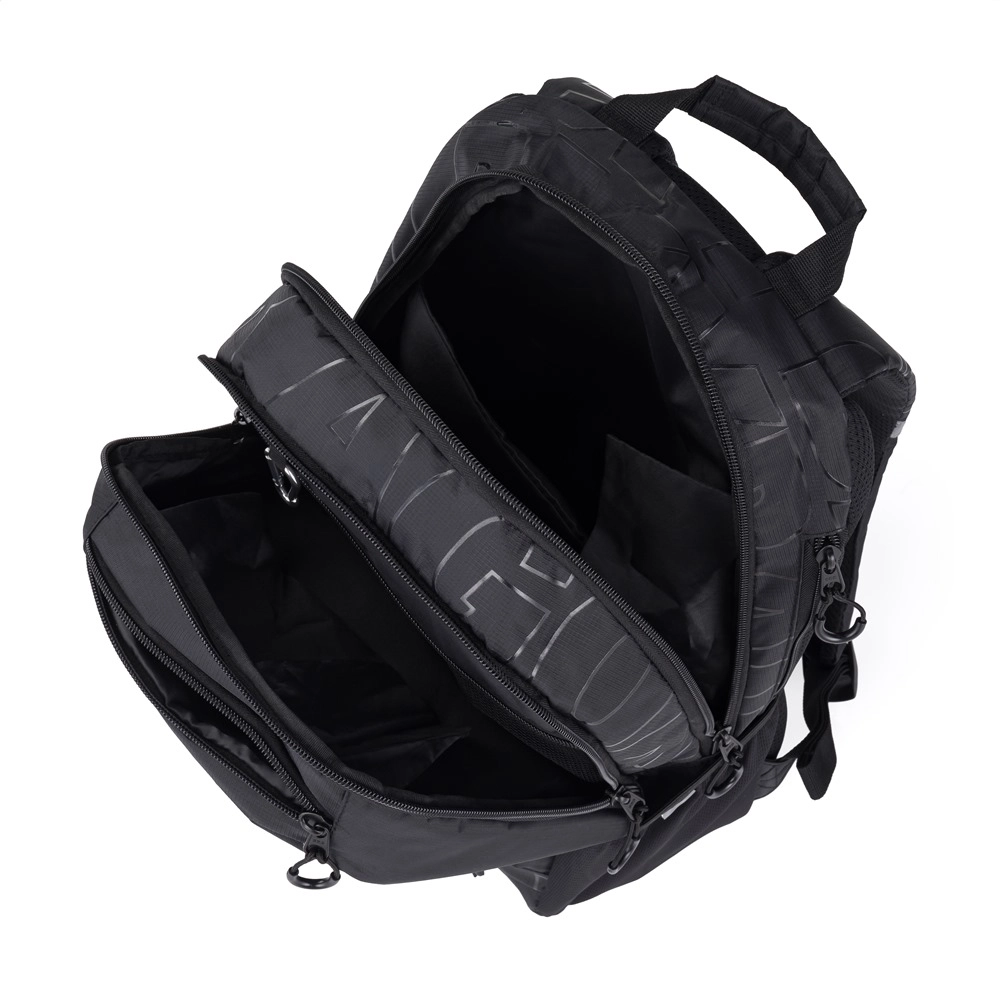 - Apgalvota organizacija: 2 pagrindinės kameros, priekinė kišenė, paslėpta nugaros kišenė, kišenė nešiojamam kompiuteriui, karabinas raktams.