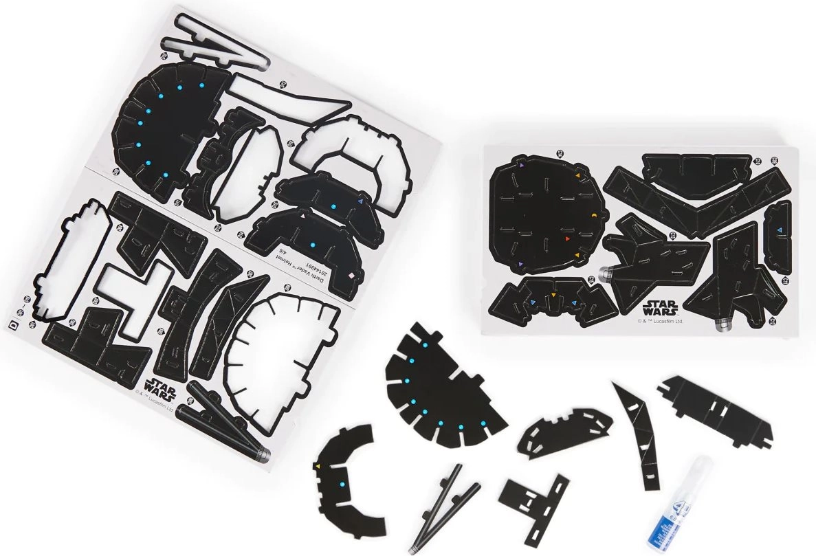 Patirkite epinį nuotykį su filmo lygio 4D Darto Vėderio šalmo modeliu. Dėl detalių, įkvėptų originalios rekvizitos, ir tvirto stovo jis puikiai išsiskirs ant bet kurios lentynos. Konstravimas intuityvus ir smagus – detales paprastai išimate iš lakštų, suklijuojate ir netrukus turite paruoštą modelį.