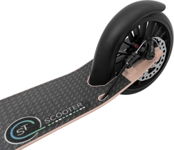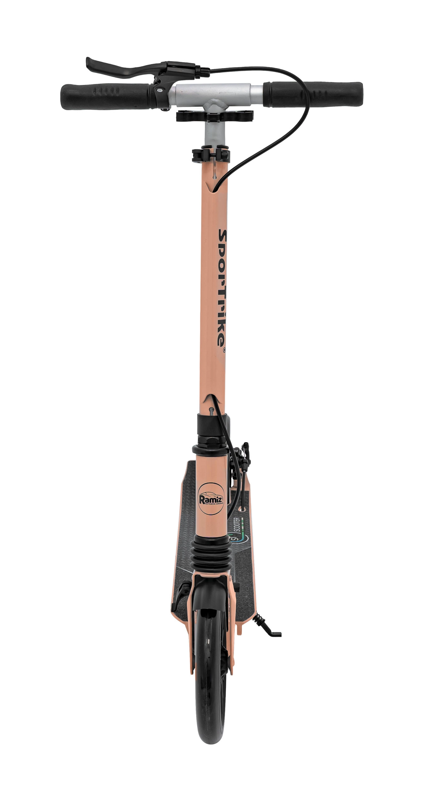 Stilingas miesto paspirtukas Sportrike su lengvu aliuminio rėmu, dvejų tipų stabdžių sistema (rankinis diskinis + pakojinis) ir reguliuojamu vairo aukščiu patogiam važiavimui. Neslystanti platforma, guminiai 190 mm ratai ir praktiška kojelė užtikrina saugumą, stabilumą ir lengvą pastatymą.