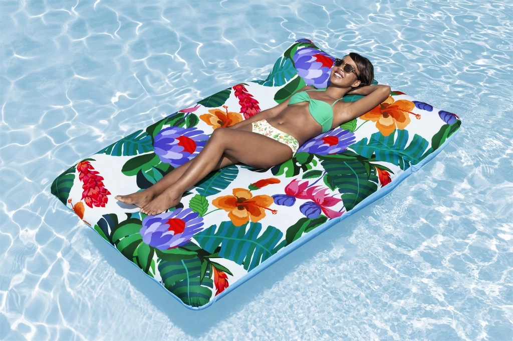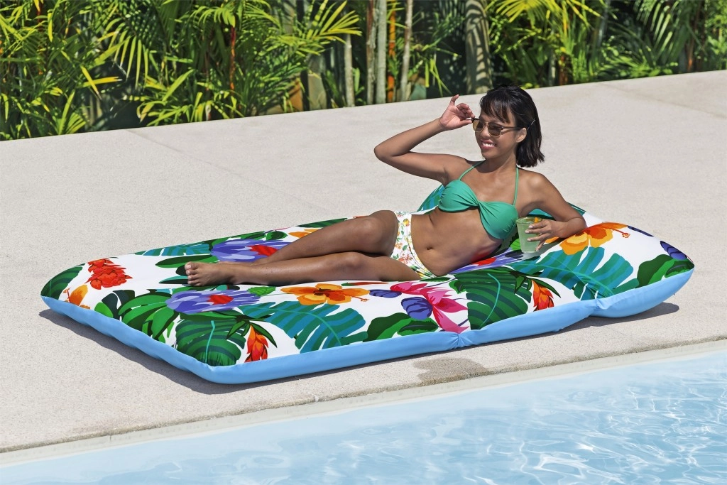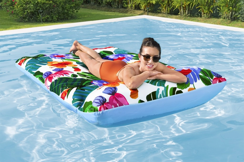 Mėgaukitės nerūpestingu poilsiu plūduriuodami baseine ar ežere. Šis erdvus pripučiamas gultas, kurio matmenys 200 × 123 cm, derina stabilų plūdrumą su išskirtiniu patogumu. Malonų tekstilinį užvalkalą galima lengvai nuimti ir išskalbti skalbimo mašinoje, todėl gultas visada bus švarus ir paruoštas kitam maudymuisi.