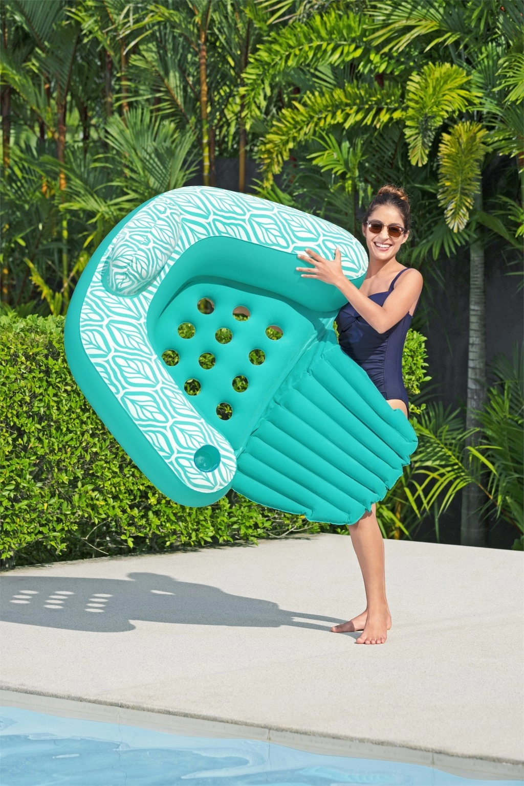 Apgalvota konstrukcija su trimis oro kameromis didina stabilumą ir leidžia išlaikyti iki 100 kg. Praktiškas gėrimo laikiklis užtikrina, kad gaiva visada būtų po ranka. Patvari PVC medžiaga kartu su saugos vožtuvais leidžia lengvai ir saugiai pripūsti bei išleisti orą.