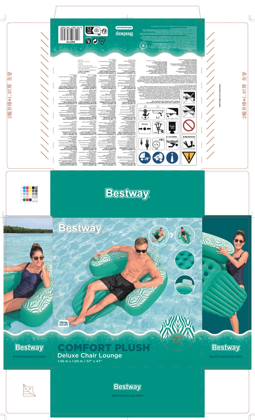 Pripučiamas Bestway Deluxe Comfort Plus krėslas idealiai tinka baseinui, ežerui ir ramioms jūros vietoms. Ergonominis atlošas su integruota pagalvėle prilaiko nugarą ir kaklą, o sulankstomas pakojis leidžia pakelti sėdimą dalį ir pasirinkti patogią padėtį sėdint ar gulint. Aksomiškai švelnus, vandeniui atsparus Comfort Plus paviršius malonus liesti ir vandenyje atrodo dar patraukliau.