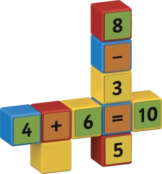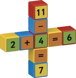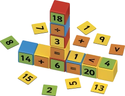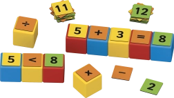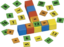 Dvisidės segtės su skaičiais ir ženklais leidžia dėlioti paprastus ir sudėtingesnius pavyzdžius. Vaikai natūraliai treniruojasi sudėti, atimti ir mokosi daugybos pagrindų.