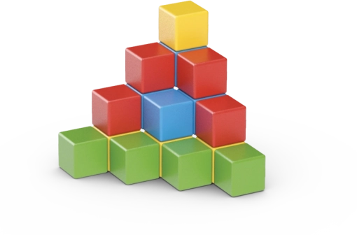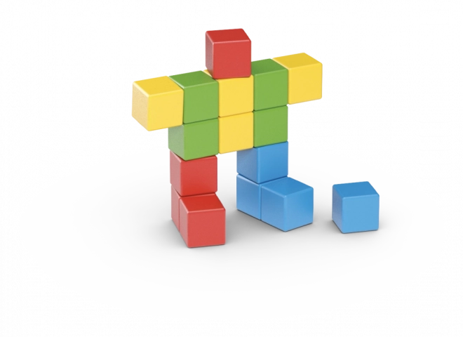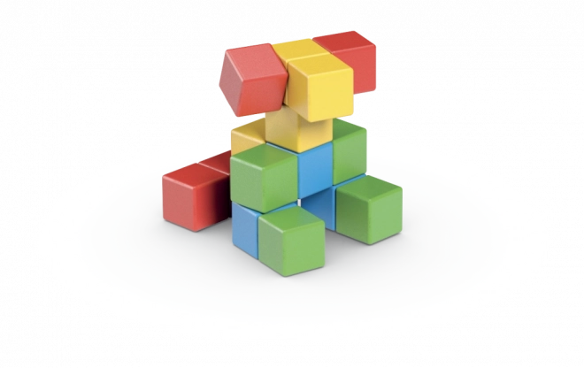 Iš 16 kubelių galite sudėti paprastas figūrėles, gyvūnus ir fantastiškas formas. Žaidimas natūraliai lavina vaizduotę ir loginį mąstymą.