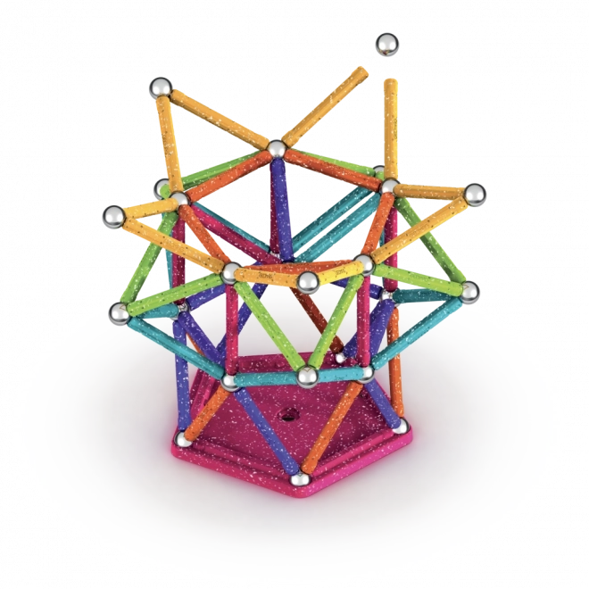 Su Geomag Glitter konstruktoriumi lengvai pastatysite nuo paprastų formų iki sudėtingų 3D konstrukcijų. Spalvotos blizgančios lazdelės kartu su tvirtais plieniniais rutuliukais ir pagrindais leidžia kurti stabilias ir įspūdingas kompozicijas, kurios skatina vaikus ir suaugusiuosius eksperimentuoti.