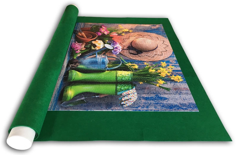 Jokių užimtų stalų ir baimės, kad detalės išsibarstys. Šis ritinamas kilimėlis su veltinio paviršiumi idealiai tinka kiekvienam dėlionių mėgėjui – nuo 300 iki 6000 detalių. Tiesiog išskleiskite, dėliokite, o prireikus susitvarkyti – susukite kilimėlį su nebaigtu paveikslu ir pritvirtinkite dirželiais.