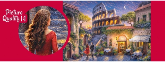 Patirkite unikalią vakarinės Romos atmosferą su šia 1000 dalių dėlione iš CherryPazzi, kurioje pavaizduota romantiška įsimylėjėlių pora, žengianti link apšviesto Koliziejaus. Šis vaizdas idealus visiems Romos ir romantikos mylėtojams.