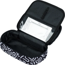 Gaminys turi kelis skyrius ir kišenėlę su užtrauktuku, kas palengvina smulkių daiktų organizavimą. Padeda viską laikyti savo vietoje, todėl tinka ir kaip kosmetinė ar papildoma dėžutė/tašelė.