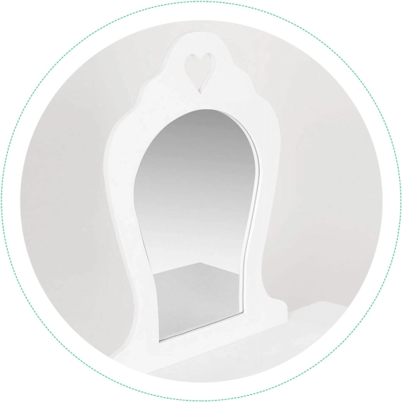 Širdelės detalė ir platus veidrodžio paviršius suteikia staliukui žavesio ir leidžia vaikams patogiai pasipuošti net žaidžiant.