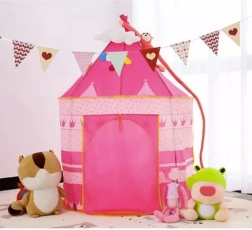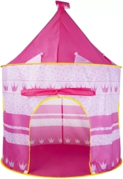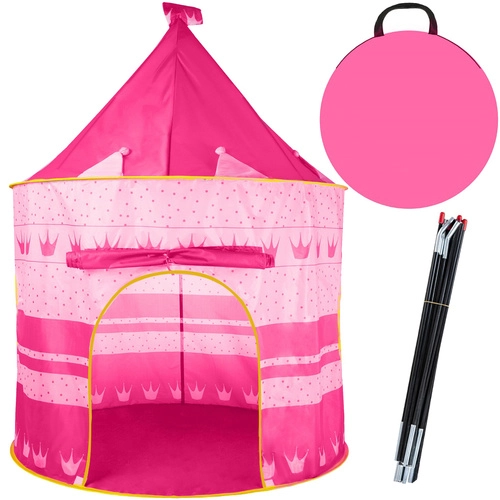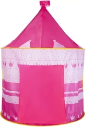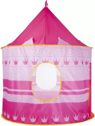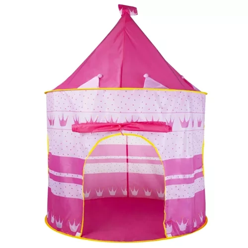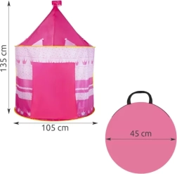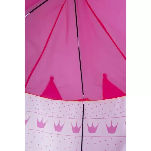Stilinga rožinė pilies formos palapinė su karūnėlių raštu skatina kūrybišką žaidimą ir fantaziją. Du tinkleliai langeliai užtikrina oro cirkuliaciją ir matomumą, įėjimą patogu susukti ir užsegti lipduku (Velcro). Erdvi konstrukcija telpa keliems vaikams ir sukuria jaukų kampelį skaitymui bei žaidimams.