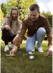Su šiuo petankės rinkiniu galėsite žaisti bet kada ir bet kur – ant žolės, asfalto ar smėlio aikštelėje. Žaidimui reikia minimalios paruošos, jis greitai perprantamas ir puikiai tinka šeimoms bei draugams. Dėl skirtingų žaidimo formatų (vienetai, dubliai, tripliai) pramogausite ir mažose, ir didesnėse grupėse.