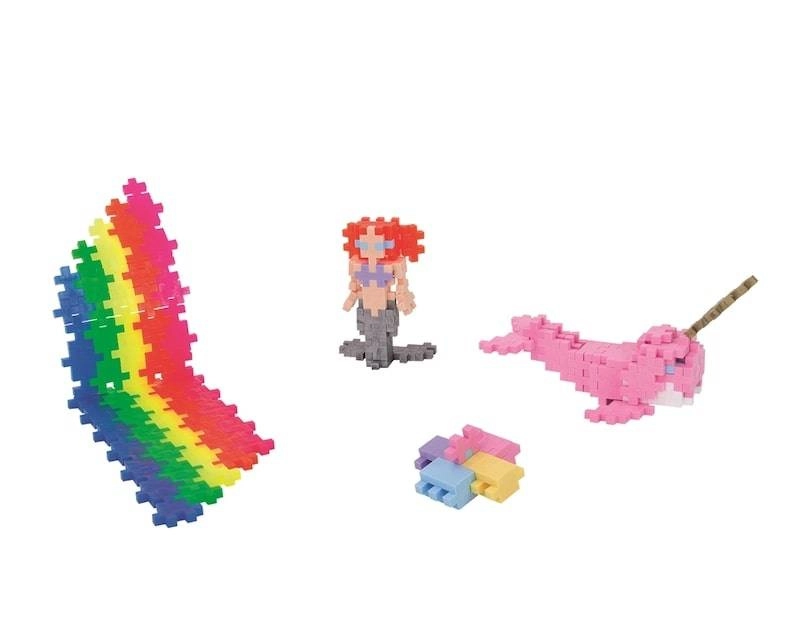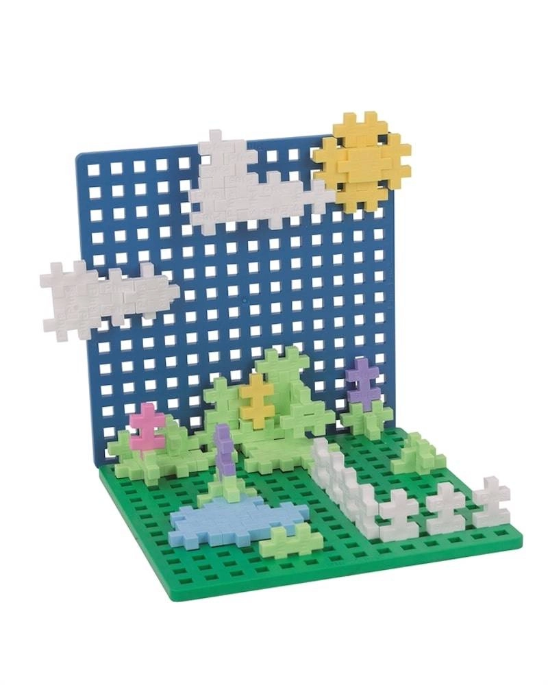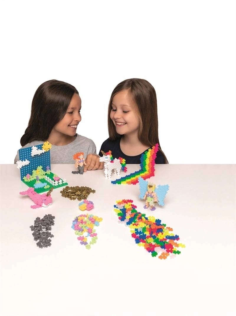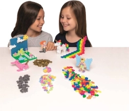 Unikali PLUS-PLUS forma leidžia kurti plokščius paveikslėlius ir stabilius 3D modelius – nuo gyvūnų ir figūrėlių iki ištisų peizažų.