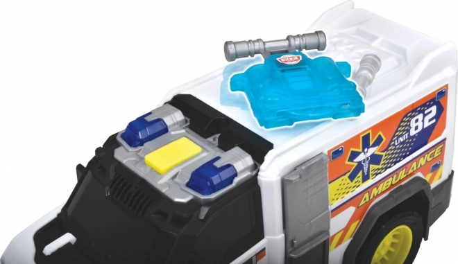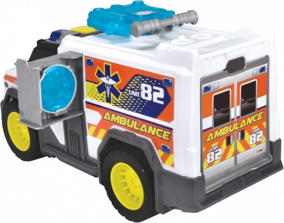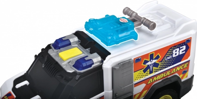 30 cm ilgio Dickie Toys greitosios pagalbos automobilis turi kelias puikias funkcijas, kurios suteiks nepamirštamų įspūdžių: