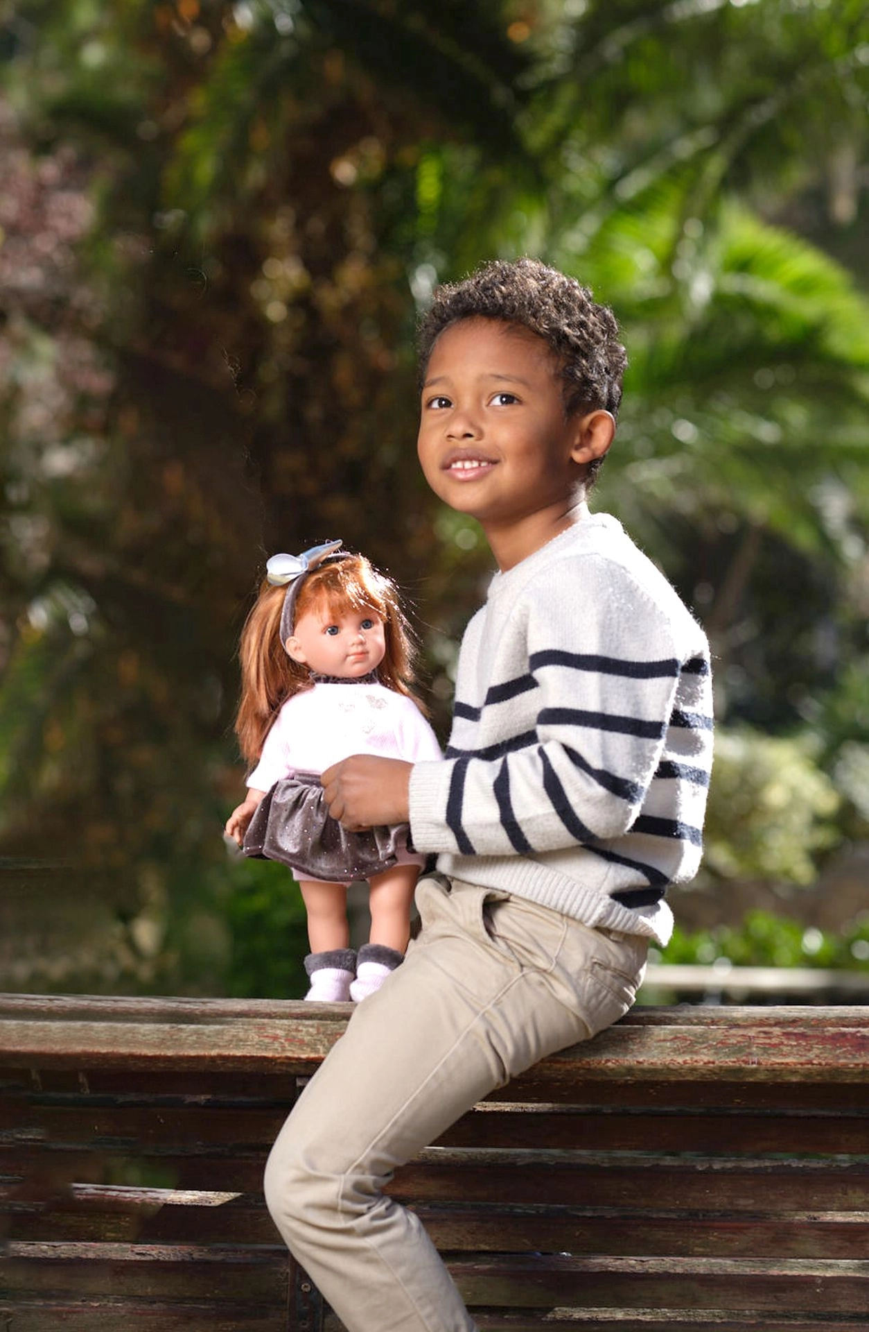 Elegantiška lėlė Nicole, 35 cm aukščio, džiugina realistiškomis detalėmis ir kokybišku atlikimu. Rankų darbo Ispanijoje iš aukščiausios kokybės medžiagų, su švelniai modeliuotais bruožais, ilgais blakstienomis ir rūpestingai siūtais drabužėliais. Puiki dovana vaikams, skatinanti fantaziją ir vaidmenų žaidimus.