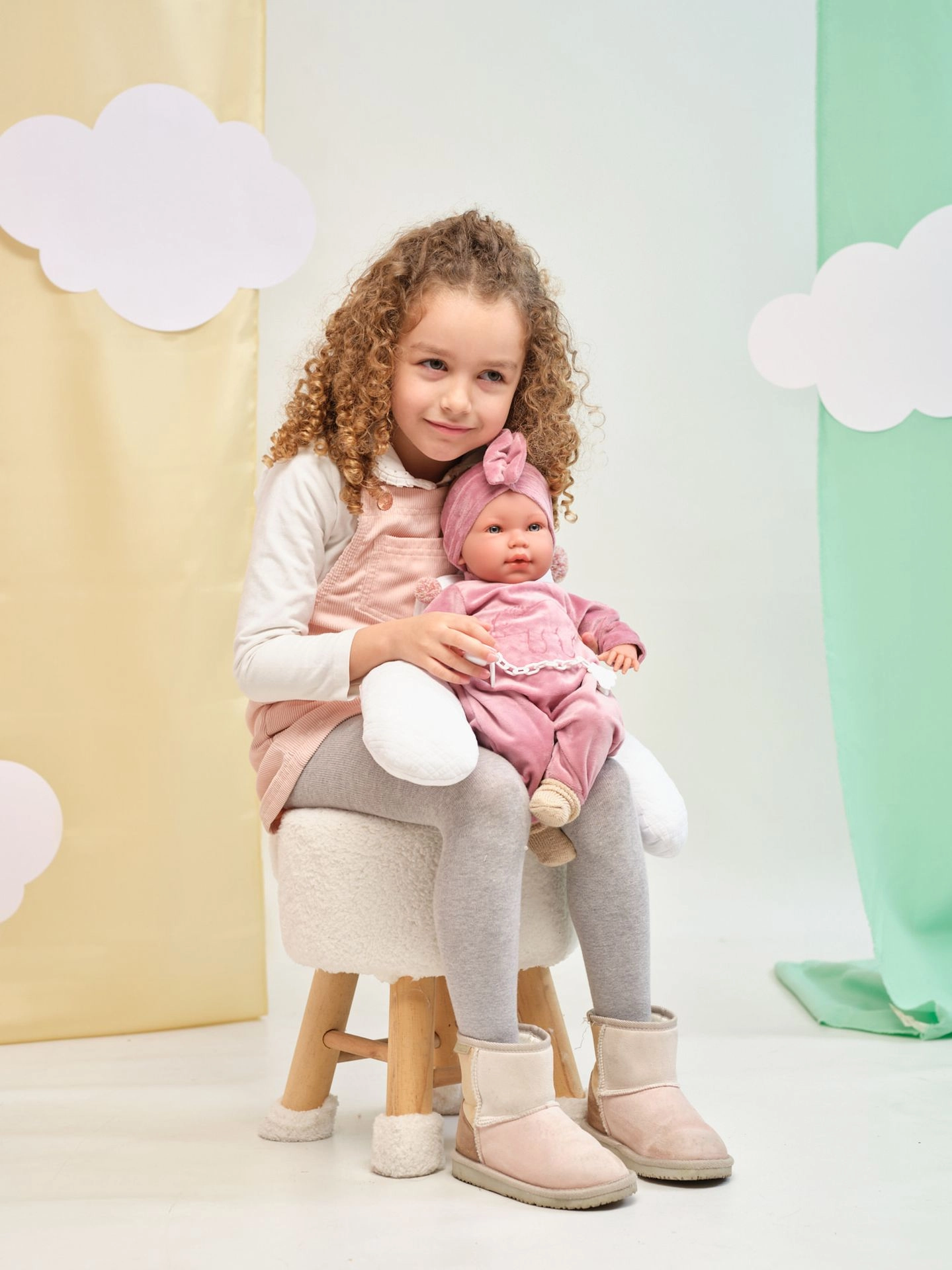 Ši rankų darbo lėlė žavi švelnia mimika, gražiomis blakstienomis ir detaliai suformuotomis vinilinėmis rankytėmis bei kojytėmis. Tekstilinis pilvukas malonus glausti, o paspaudus pilvuką lėlė skleidžia verkimo garsą, kuris skatina vaidmeninius žaidimus ir empatijos ugdymą.