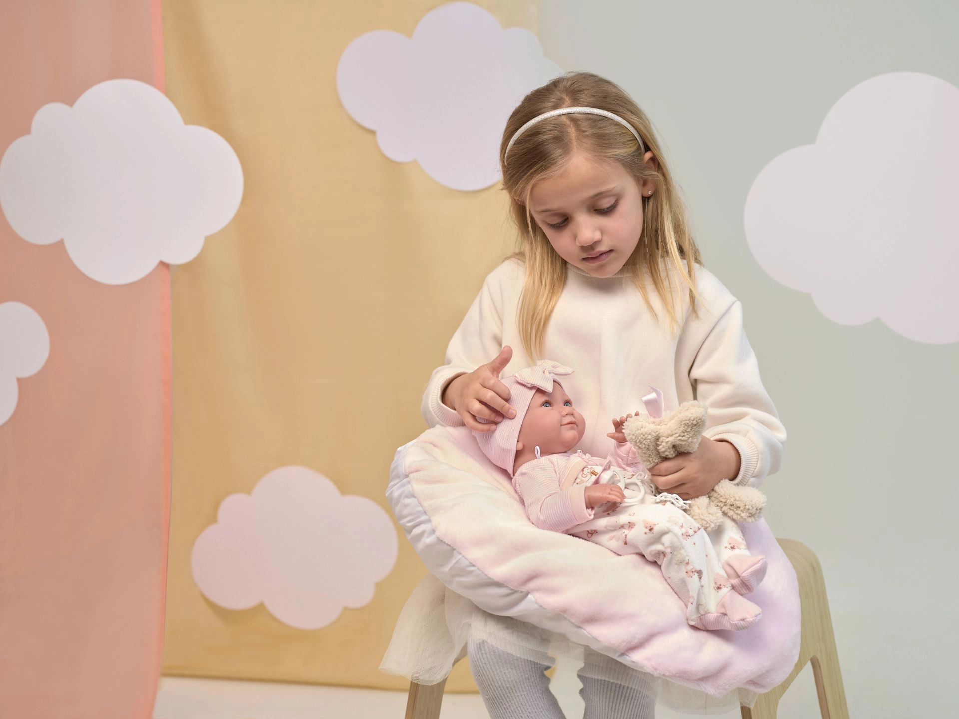 Rinkinyje yra dalių dviejų komplektas drabužėlių ir pagalvėlė, tad vaikai gali žaisti migdymą ar „pervystymą“. Lėlė turi judančias rankas, kojas ir galvą, kas skatina smulkiosios motorikos ir kūrybiško žaidimo raidą. Idealu kaip dovana mažosioms globėjoms ir lėlių kolekcionierėms.