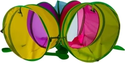 Pop-up konstrukcija su elastingu plieniniu rėmu – tereikia išimti iš dėklo ir tunelis išsiskleis pats. Sulankstyti taip pat paprasta.