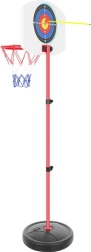 Šis vaikiškas 2‑in‑1 rinkinys suteikia valandų valandas džiaugsmo ir judesio: treniruokitės metimus į krepšį ir taiklumą su lanku. Lengva ir stabili konstrukcija leidžia patogiai pernešti ir greitai sureguliuoti lanko aukštį, todėl jis „auga“ kartu su vaiku. Puikus pasirinkimas namams, sodui ar vaikų kambariui.
