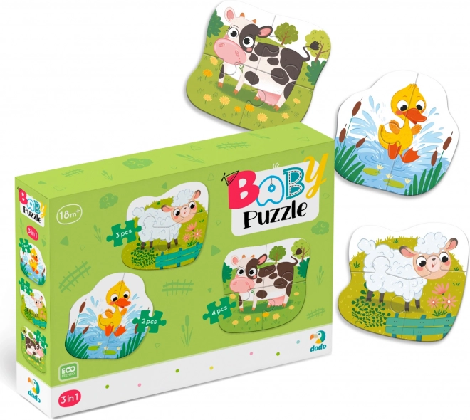 Šiame rinkinyje yra trys atskiros kontūrinės dėlionės su ūkio gyvūnų motyvais, kiekviena su skirtingu dalių skaičiumi (2, 3 ir 4). Dėl palaipsnio sudėtingumo tai idealus pasirinkimas pirmajam dėliojimui – lavina susikaupimą ir suteikia vaikams džiaugsmo pavykus užbaigti.