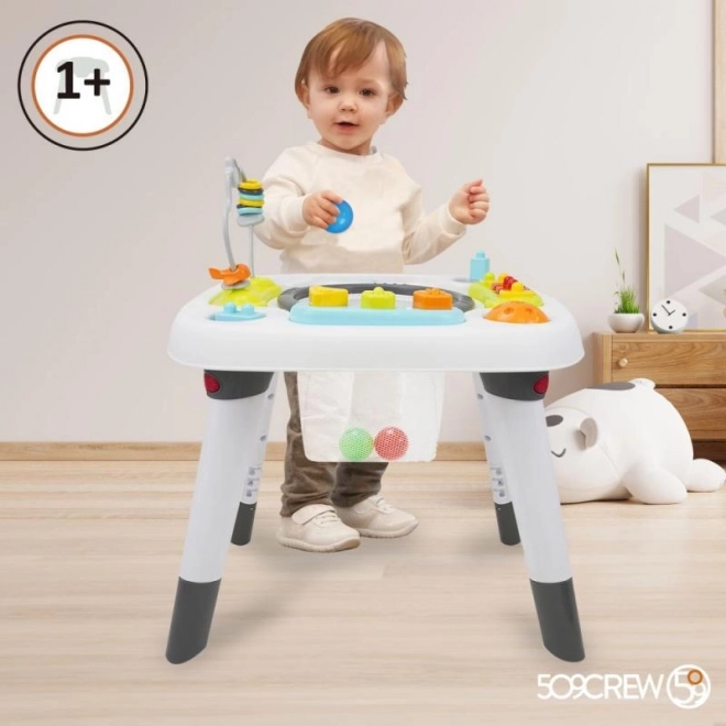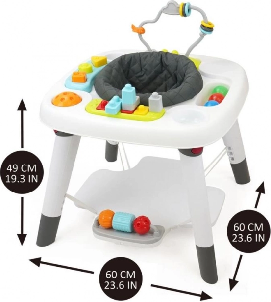 Interaktyvus vaikų žaidimų stalas 3 viename yra daugiau nei žaislas. Pirmajame etape vaikas gali tyrinėti aplinkinį pasaulį patogiai sėdėdamas ir pasiekdamas žaislus. Antrasis etapas suteikia pramogų mokantis vaikščioti ir bendrauti su interaktyviais, spalvingais žaislais, išdėstytais aplink stalą. Trečiasis, paskutinis etapas paverčia stalą funkcionaliu baldų elementu, kuris gali būti naudojamas žaidimams, valgymui ar kitoms kūrybinėms veikloms.