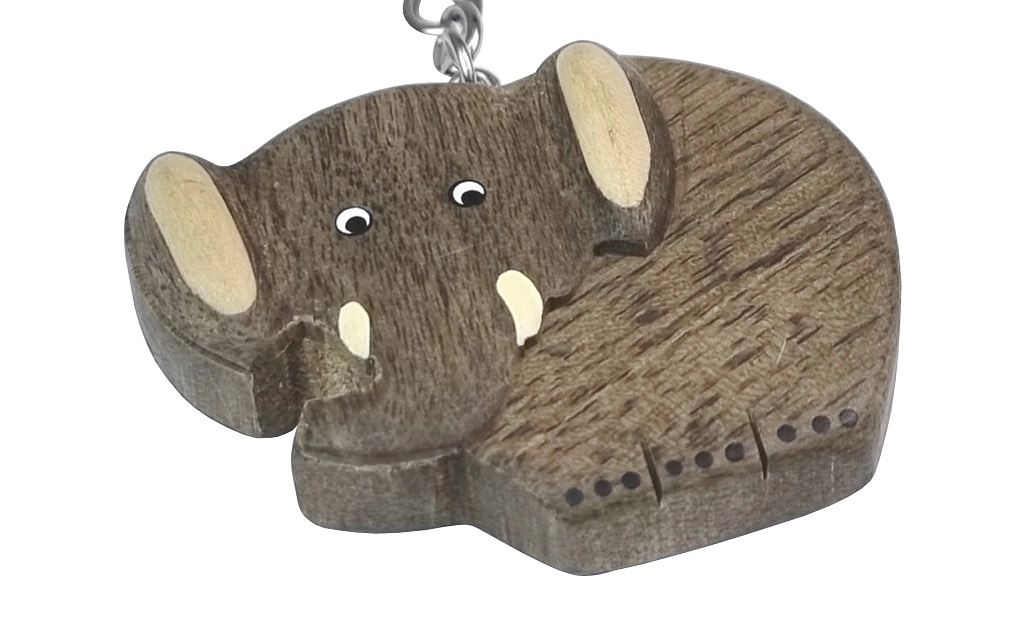 Šis didelis medinis raktų pakabukas drambliuko formos yra idealus dovanos pasirinkimas visiems gamtos ir gyvūnų mylėtojams. Rankų darbo iš penkių rūšių medienos, prisegkite jį prie raktų ar krepšio ir turėkite gamtos dalelę visada su savimi.