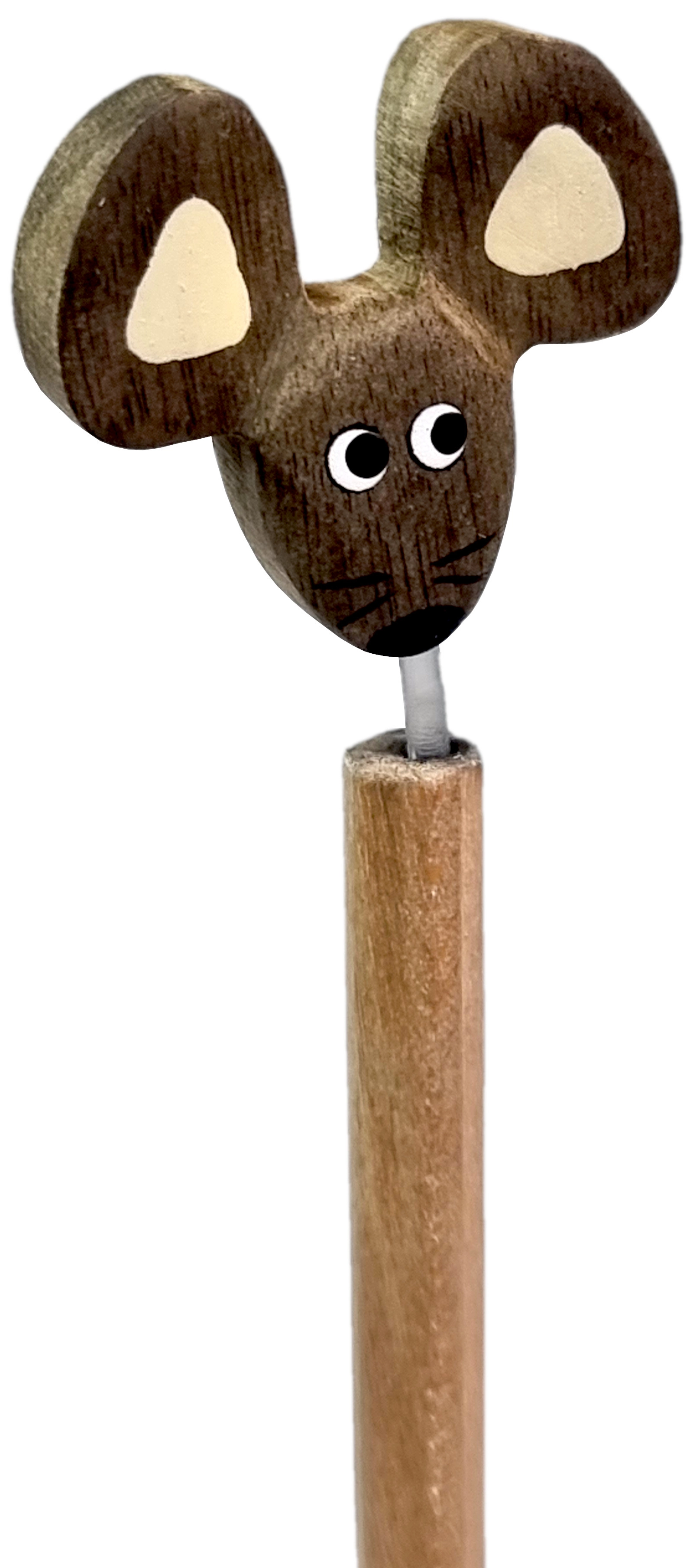 Pelės galvutė pieštuko viršuje tarnauja ne tik kaip dekoras, bet ir kaip priemonė kūrybinei saviraiškai.