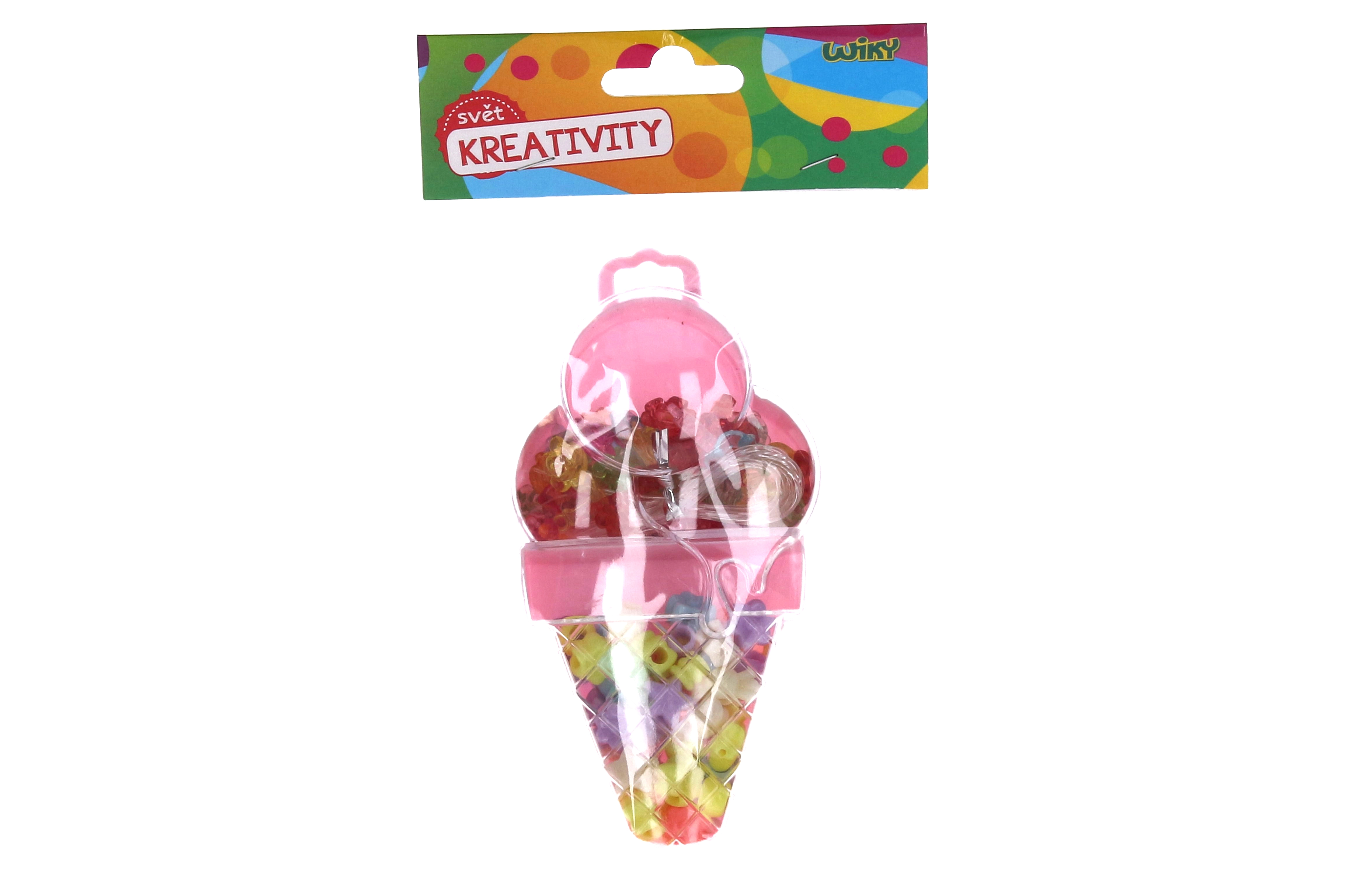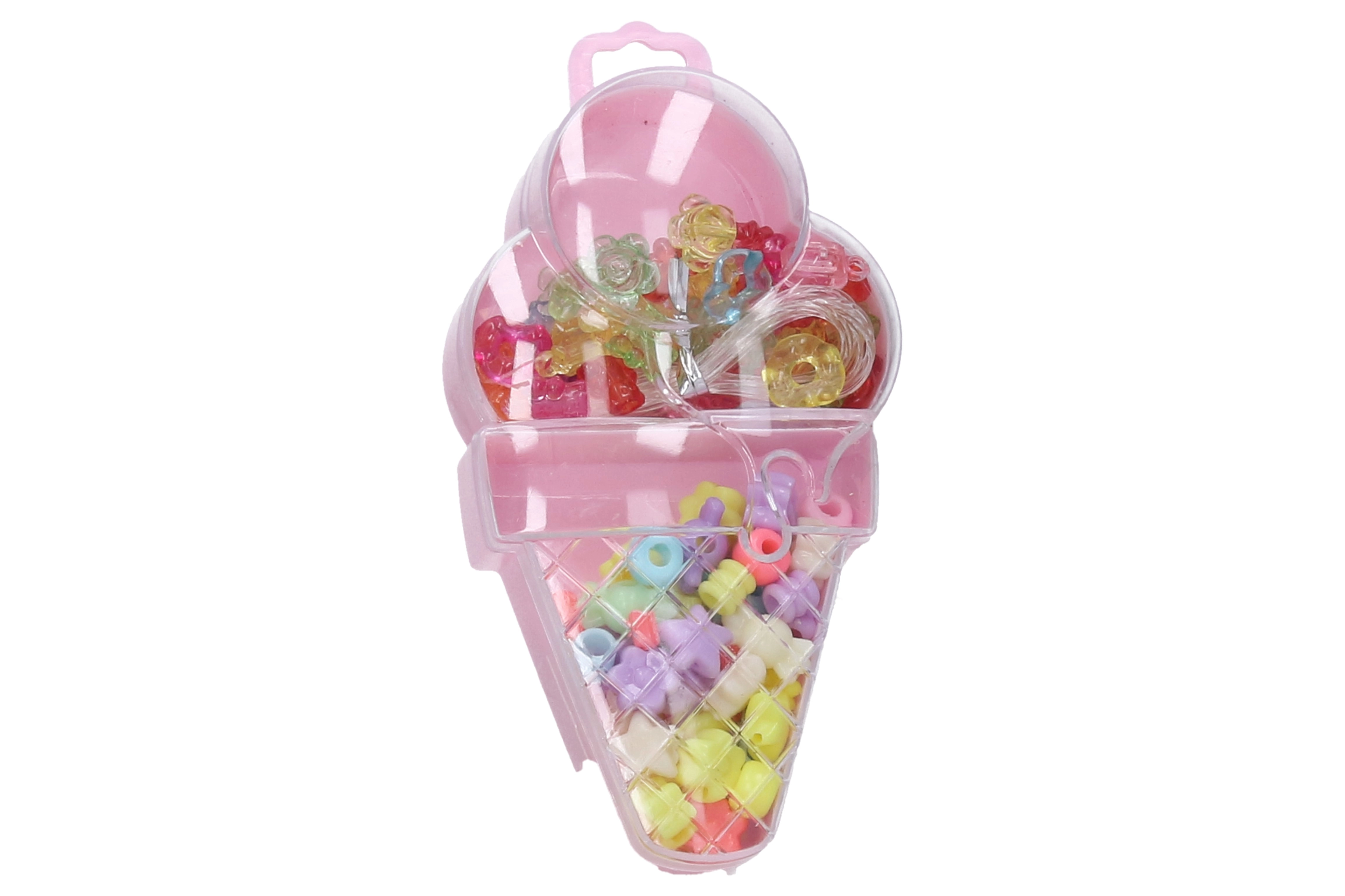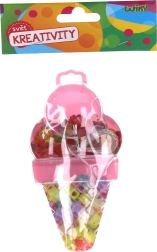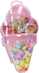 Atraskite linksmą ledų formos karoliukų rinkinį, kuriame yra įvairių dydžių ir spalvų karoliukai bei virvelė lengvam vėrimui.
