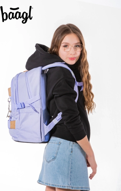 Mokyklinis rinkinys BAAGL Skate Lilac sukurtas maksimaliam patogumui, ilgaamžiškumui ir organizuotumui. Lengva kuprinė (tik 850 g) turi 25 l tūrį, 7 kg keliamąją galią ir pagaminta iš tvirto, vandeniui atsparaus ir perdirbto audinio. Trys atskiri skyriai su aiškiu organizatoriumi ir paminkštinta kišene 15" nešiojamam kompiuteriui ar planšetei palaiko tvarką. Yra atšvaitiniai elementai didesniam saugumui ir prekinio ženklo YKK užtrauktukai sklandžiam veikimui.