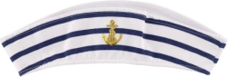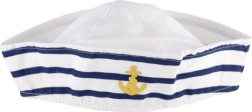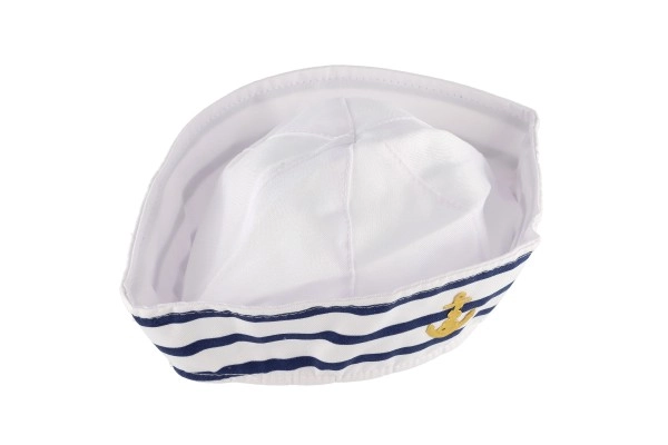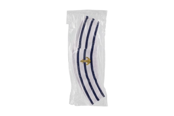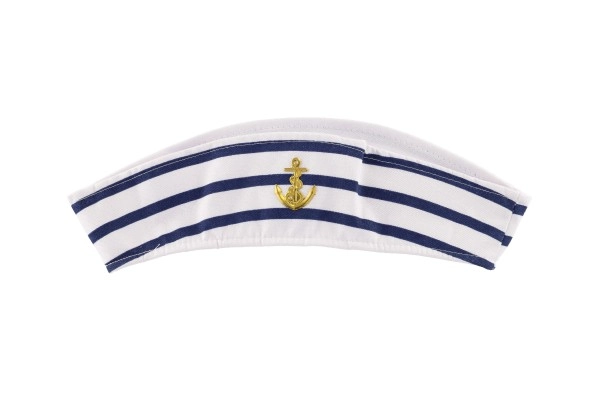 Leiskitės į jūros pasaulį su klasikine jūreiviška kepure, kuri išsiskiria sodria balta spalva, mėlynomis juostelėmis ir išsiuvinėtu inkaro simboliu. Kepurė pagaminta iš malonios tekstilinės medžiagos, todėl ją patogiai dėvėsite visą vakarą.