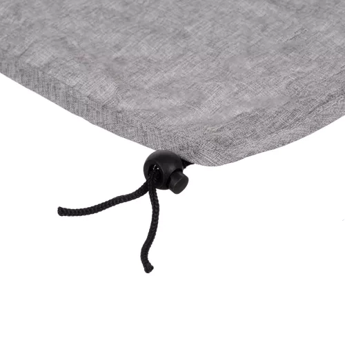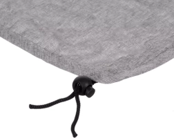 Guma per stogelį ir virvelės su fiksatoriais leidžia skydelį lengvai pritvirtinti prie daugumos vežimėlių ir pritaikyti prie esamų sąlygų.