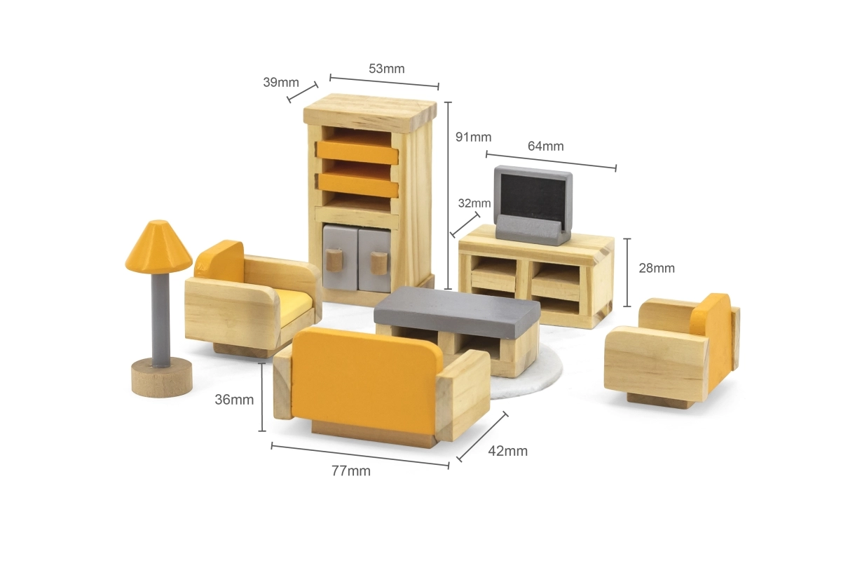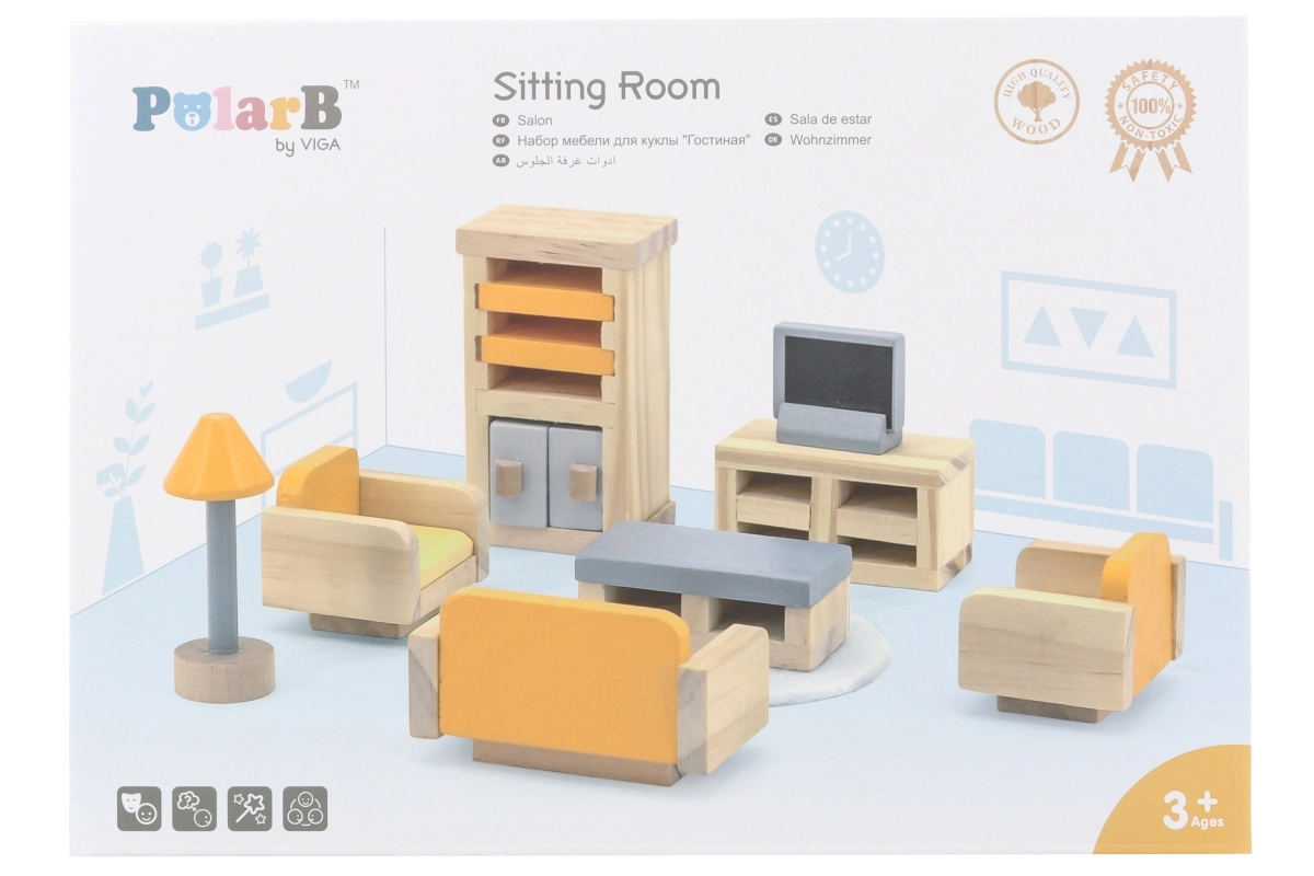 Mediniai baldai lėlių nameliui iš prekės ženklo PolarB suteikia kūrybišką pramogą vaikams. Pagaminta iš aukštos kokybės medžiagų ir dažyta netoksiškais dažais, kad žaisti būtų saugu.