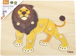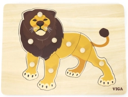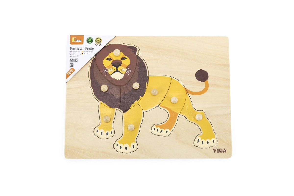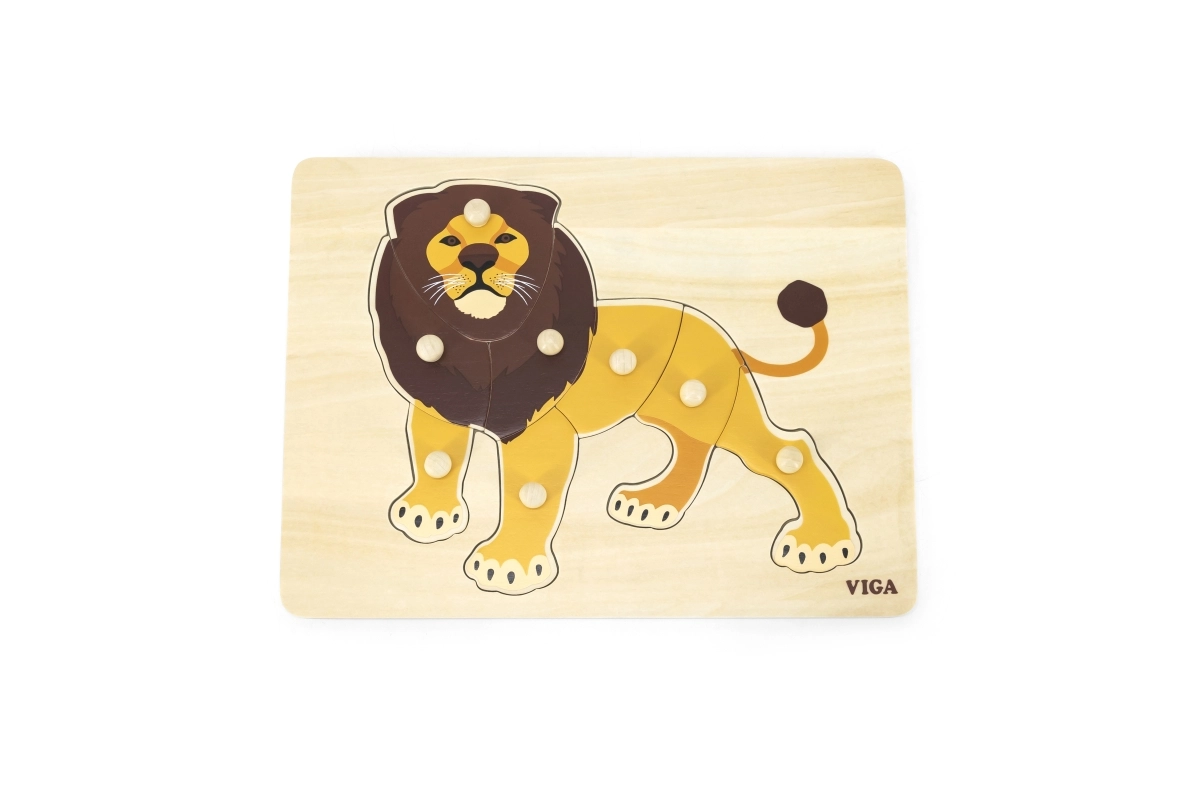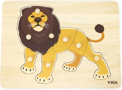 Medinė įstatomoji dėlionė su linksmu liūtu – puikus pasirinkimas pirmajam jūsų vaiko galvosūkiui. Patogios mygtukinės rankenėlės leidžia dalis lengvai paimti ir įstatyti į teisingą vietą, taip natūraliai lavinant pirštų motoriką ir kantrybę. Spalvinga liūto iliustracija motyvuoja vaikus žaisti ir mokytis.