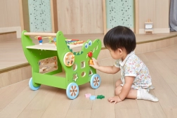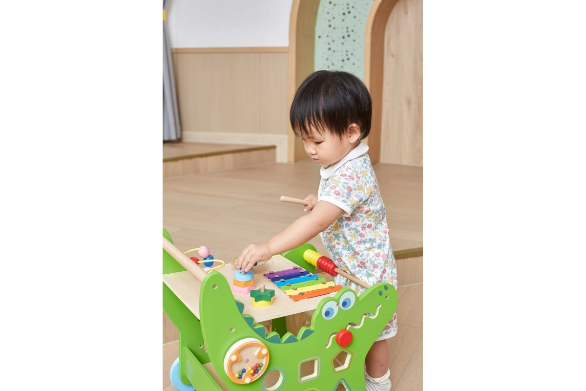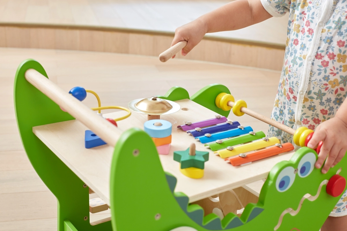 Ksilofonas, skaitliukas, labirintas, krumpliaračiai, formų rūšiavimo dėžutė, motorikos kilpa ir kiti elementai išlaiko vaikų dėmesį ir natūraliai lavina jų įgūdžius.
