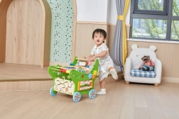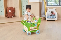 Pagrindinis skydelis siūlo muzikines, logines ir sensorines užduotis, kurios ilgai įtraukia. Integruota erdvė leidžia vežtis mėgstamus žaislus, todėl mokymasis vaikščioti tampa smagiu nuotykiu.