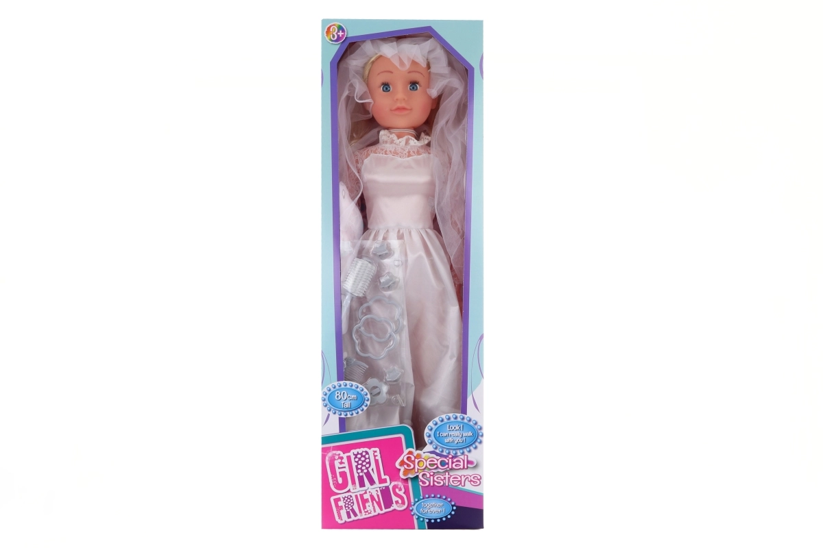 Didelė vaikštanti lėlė nuotakos stiliumi pradžiugins kiekvieną mažą princesę. Ji turi judančias kojas ir rankas, todėl vaikai su ja gali tikrai vaikščioti. Dėl 80 cm ūgio lėlė atrodo realistiškai ir taps mylima žaidimų drauge, skatinančia vaizduotę.