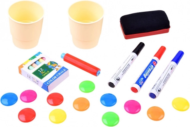 Multifunkcinė vaikiška lenta 3+ magnetinė + kreidinė + taburetė + kanceliarinės prekės