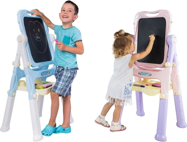 Vaikiška dvipusė magnetinė ir kreidinė stovima piešimo lenta