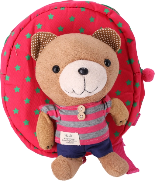 Pliušinė meškutė priekyje paverčia kuprinę mėgstamu kelionių draugu ir skatina vaikus ją noriai nešioti.