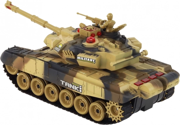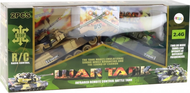 Du realistiški nuotolinio valdymo tankai su infraraudonųjų spindulių kovos sistema suteikia įtemptą veiksmo pramogą dviem žaidėjams. Kiekvieno tanko ilgis 44 cm, bokštelis sukasi 300°, guminiai vikšrai užtikrina puikų sukibimą, o 2,4 GHz valdymas veikia be trukdžių. Gyvybių sistema su keturiais indikatoriais, garsiniai efektai (variklio ir šaudymo), greitis iki 7–8 km/val. ir gausi komplektacija, įskaitant akumuliatorius ir įkroviklius, garantuoja realistišką mūšį ir ilgą veikimo laiką.