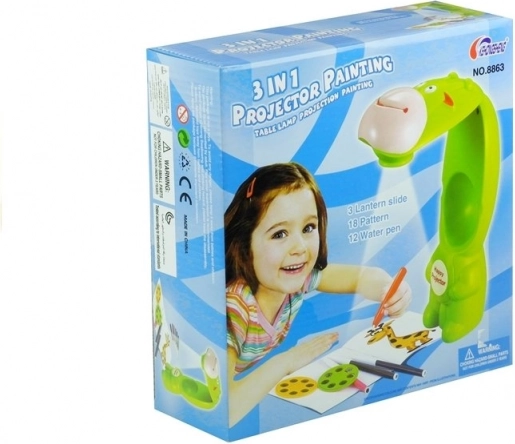 Šis vaikiškas žirafos projektorius projektuoja vaizdus ant popieriaus arba sienos, todėl mažieji menininkai gali lengvai mokytis piešti žingsnis po žingsnio. Valdymas paprastas ir intuityvus – tereikia įdėti diską, pasirinkti motyvą ir paspausti projektoriaus mygtuką. Dėl reguliuojamo projekcijos kampo tinka naudoti ant stalo ir projektuoti ant sienos.