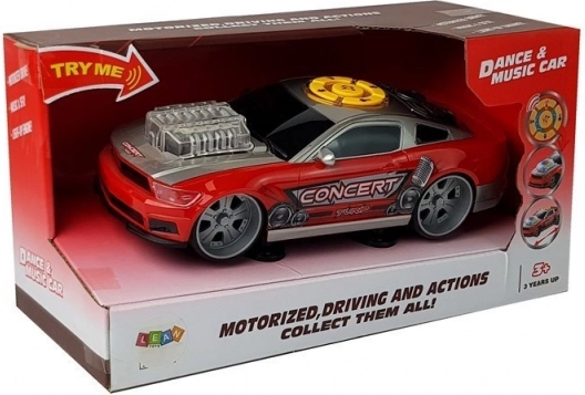 Linksmas automobilis mažiesiems muzikos ir automobilių gerbėjams. Ant stogo yra valdymo pultas ir garsiakalbių imitacija, ant kapoto – variklio maketas su šviesos efektais. Paspaudus mygtukus įsijungia muzika, šviesos efektai ir užvedimo bei pagreitėjimo garsai. Dėl važiavimo pirmyn/atgal funkcijų ir sportiško dizaino – puiki dovana vaikams nuo 3 metų.