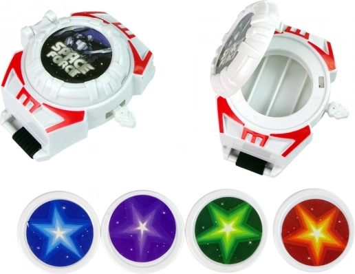 Diskų šaudyklį galima segėti ant riešo ir naudoti spalvotiems diskams šaudyti, kas suteikia žaidimui dar daugiau jaudulio.