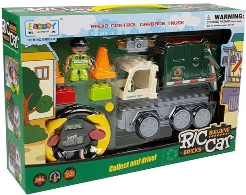 Smagus ir saugus žaidimas mažiesiems vairuotojams: nuotoliniu būdu valdomas šiukšliavežės automobilis su realistiniu dizainu ir atidaromu viršutiniu dangčiu. Rinkinį sudaro 12 dalių, atitinka CE ir EN 71 standartus, lavina vaizduotę ir smulkiąją motoriką, veikia su 9 V (pultelis) ir 4× AA (automobilis) baterijomis.