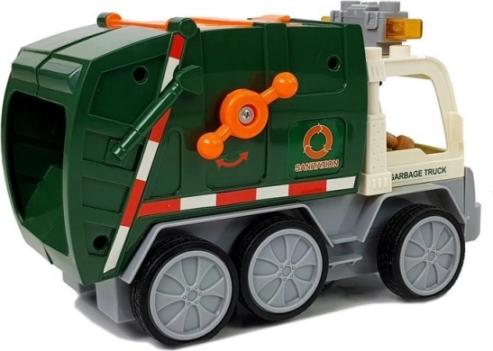 Šiukšliavežė turi tikroviškas detales ir praktišką atidaromą viršutinį dangtį „atliekų“ pakrovimui, todėl žaidimas primena tikrą darbą.