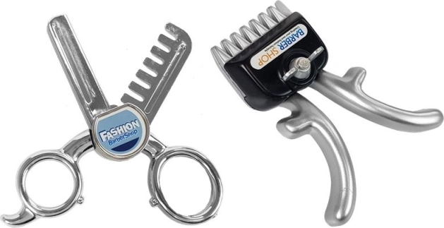 Džiovintuvas su besisukančiu spalvotu būgneliu ir mašinėlė su kirpimo garsu suteikia žaidimui tikrą kirpyklos ir BARBER SHOP atmosferą.