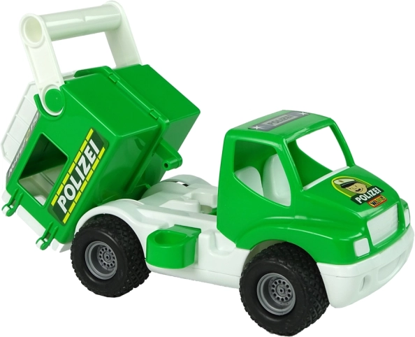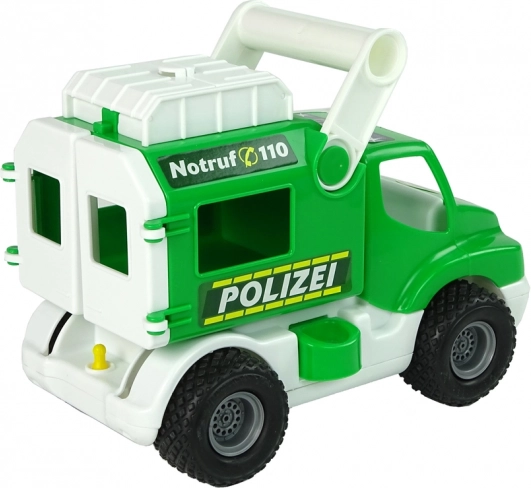 Žalia policinė mašina ConsTruck iš Polesie – patvarus žaislas vaikams nuo 1 metų. Ji turi gumininius ratus su protektoriumi geresniam sukibimui, atidaromas galines dureles ir viršutinę dėtuvę smulkiems lobiams ar figūrėlėms paslėpti. Šoninė priekabos fiksacija ir pakeliama kėbulo dalis užtikrina ilgalaikį smagų žaidimą ir skatina smulkiosios motorikos bei loginio mąstymo lavinimą. Pagaminta iš saugių, sertifikuotų medžiagų, turi CE sertifikatą.